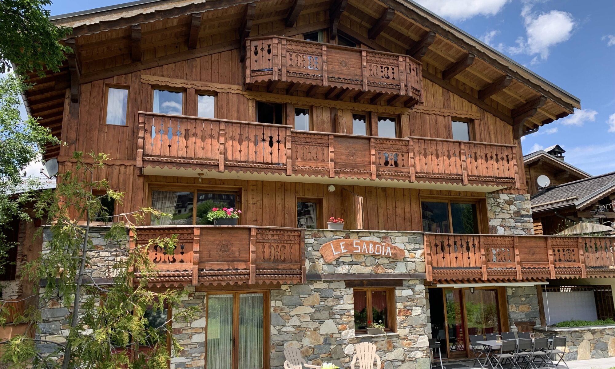 L’appartement Sabot de Vénus est en rez de jardin du chalet typiquement savoyard « Le Saboïa », en première ligne face aux pistes l’hiver et entouré de jardins l’été.